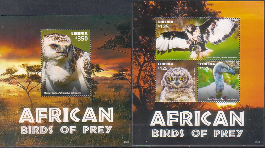 Либерия, хищные птицы, 2клб+2бл